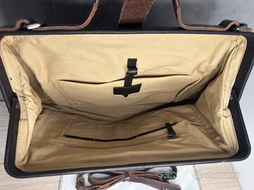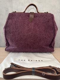 Borsone The Bridge in pelle e tessuto pesante con chiusura rigida stile borsa medico. Molto capiente. Ideale per viaggi e ufficio. Possibilità di essere portata a mano o spalla con la tracolla che fornisco (leggermente usurata)