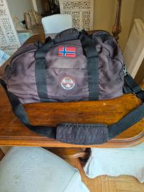 valigia flcm 60 x cm 30 con tracolla rimuovibile per uso borsone, come trolley ha rotelline e tracollina superiore in tessuto tecnico. imperfezioni. la parte grigia presenta sfumature di stitura leggera (che rendono la borsa paradossalmente bella). il tessuto tecnico all allaltezza delle rotelline è leggermente rovinato. tutto il resto è perfetto. la valigia è integra e perfettamente resistente. ulteriori foto su richiesta