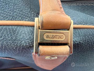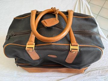 ORIGINALE Bellissimo borsone da viaggio Mario Valentino, Made in Italy, dallo stile intramontabile ed elegante. Materiali: autentica pelle con monogramma “V” + inserti e manici in pelle color cuoio Colore: marrone scuro con dettagli cuoio Chiusura: zip funzionante Condizioni: buone condizioni generali vintage Normali segni d’uso sulla pelle (visibili in foto) Interno pulito Struttura solida, ancora perfettamente utilizzabile Capiente, ideale per weekend o palestra elegante Design classico senza tempo Dettagli in metallo firmati Valentino
