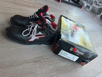 Scarpe antinfortunistiche alte, leggere e comode U-Power della linea Red Industry, con tomaia in Pelle grana mina, idrorepellente, puntale AirToe Composite, antiperforazione e suola PU/PU, antiabrasione, antiolio, antiscivolo e antistatico. Coprisottopiede Antifatica WOW2. RS S3 CI SRC ESD