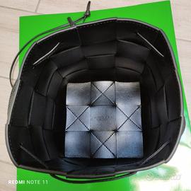 Bottega Veneta, borsa a secchiello piccola, modello Cassetta in pelle color nero. Borsa minimalista, priva di tasche. Dimensioni: cm 18,5x13,5x13, tracolla cm 49. Sono presenti segni leggeri e un graffietto, pur essendo stata utilizzata solo una volta, comunque in perfette condizioni. Made in Italy. Prezzo retail € 1600