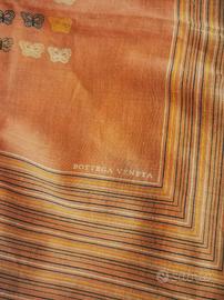 Foulard originale Bottega Veneta rosa con disegni farfalle. Mancano le etichette ma il foulard è originale al 100%. Segnalo che il foulard ha delle macchie in un punto (vedi foto) Per questo motivo vendo ad un super prezzo
