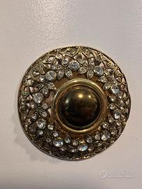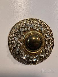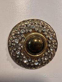 Bottone gioiello in filigrana dorata con strass e perla mordorè – Ø 4 cm