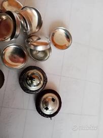Bottoni da foderare misura 16 che significa 16 mm, 100Pz completi sopra e sotto. Per foderarli occorre avere il punzoni della misura 16 e il torchietto.