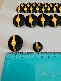 Bottoni neri in resina con gambo, effetto graffiato ed elemento centrale geometrico in color oro N.10 grandi (20-25mm) N.22 piccolo (10-15mm)