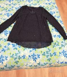 Vendo 6 pezzi abbigliamento donna usato ma tenuto bene tg M. Tutto Insieme Euro 30,00. Il lotto include 1 camicia di jeans maniche lunghe tezenis 1 camicia nera in tulle trasparente maniche lunghe con collo in paillettes oro calliope 1 camicia nera intimissimi 1 maglia blu con Paillettes e schiena in tulle trasparente 1 maglia rossa sisley 1 poncho Bordeaux con frange Ritiro a Viserba di Rimini o spedizione