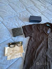 box di camicia, occhiale e portafoglio Lv, prada