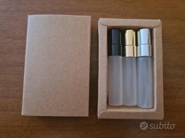 Box artigianale con 3 profumi uomo in spray da 5 ml (circa 100 spruzzi).