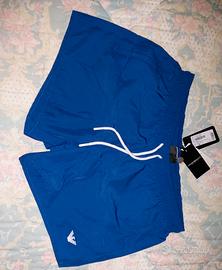 Boxer costume mare in tessuto tecnico Emporio Armani originale con cartellini. Misura 48. Colore blu. Logo con aquila ricamato. Laccio bianco.