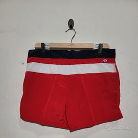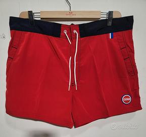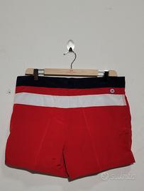 Boxer uomo in tessuto di poliammide, di colore rosso con fantasia. Coulisse di colore blu con laccetti e velcro nel giro vita,due tasche sui lati e multi righe di colore bianco,rosso e blu sul lato posteriore. Logo Colmar sul davanti e indietro, fodera interna in poliammide in rete microforata per una maggiore traspirazione e confort, taglia 54