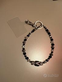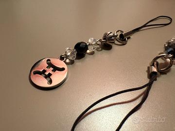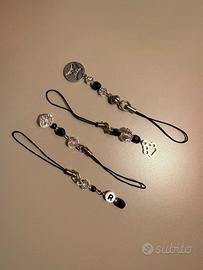 Bracciale per cellulare fatto a mano. Si indossa comodamente per una presa comoda ed elegante del telefono. Perline in vetro, mezzi cristalli, metallo, ceramica o resina montate su cavetto di acciaio. Gancio in metallo assicurato al cellulare da una pratica linguetta che si inserisce sotto la cover e non ostacola l'inserimento dello spinotto per la ricarica. In omaggio potrete scegliere uno dei charm in foto (con lettera iniziale, segno zodiacale, zampetta cane/gatto...) Ovviamente posso preparare charm personalizzati a richiesta. Ogni charm in più costa 0,50 euro. Bracciale e charm verranno spediti in sacchetto regalo. Potete vedere l'indosso nelle ultime foto (sono altri bracciali presenti nel mio armadio) Sono a disposizione per ulteriori info o dettagli. Grazie🌹