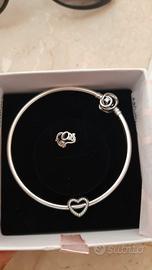 originale Pandora bracciale rigido con scatola, 1 charm cuore e 1 charm elefantino. chiusura con brillantino. Mai usato. posso consegnarlo a mano a Cinisello, Bresso o Nova milanese. Posso spedire. Vendo anche separatamente