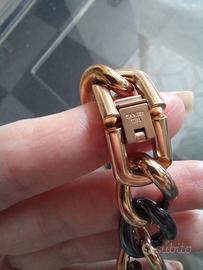 Vendo bracciale a catena grossa in acciaio inossidabile bicolore. Articolo di qualità, per peso e fattura( guardare come è fatta bene la chiusura!). È lungo fino al gancio di chiusura 19.5 cm.