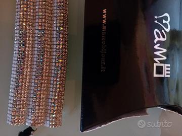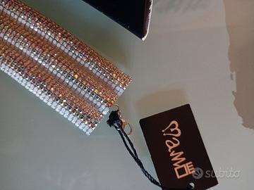Vendo bracciale a fascia morbido in nikel anallergico, impreziosito da strass, pietre dure e cristalli. Bellissimo! Misure: 17×4, escluso l'aggancio. Mamobijoux. Nuovo con cartellino e confezione originale.