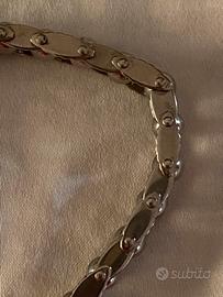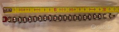 bracciale da uomo in metallo (probabile acciaio inossidabile), con un design moderno a maglie e dettagli sferici lucidi.. stile motociclista. Presentato all'interno di una scatola regalo foderata di cuscino bianco. Mai utilizzato. Per appassionati biker / Harley Davidson
