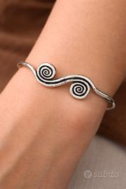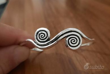Vendo bracciale con design a doppia spirale, stile etnico/boho, molto particolare e originale. ✔️ Effetto argento elegante ✔️ Regolabile, si adatta facilmente al polso ✔️ Leggero e comodo da indossare ✔️ Unisex (uomo/donna) 📌 Materiale: acciaio color argento 📌 Condizioni: nuovo / mai utilizzato 📸 Foto reali, disponibile anche foto indossato Perfetto per completare qualsiasi outfit con un tocco diverso dal solito.