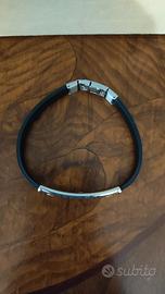 Braccialetto uomo acciaio e caucciù con due decorazioni in oro, nuovo mai indossato