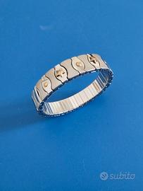 Bracciale elastico in acciaio con placche sferiche d'oro. Come nuovo, adatto per uomo e donna. possibilità di spedizione con pacco tracciabile.