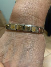Bracciale acciaio con lettere in oro usato pochissimo
