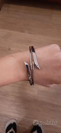 Bracciale marca Moby, di acciaio e con un diamantino vero incastonato, completo di scatola. Apertura/chiusura a scatto. In condizioni ottime, un regalo che purtroppo non ho mai potuto indossare perché grande per me.