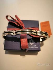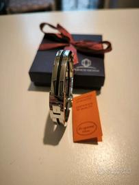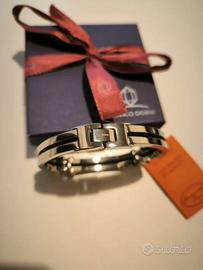 Elegante bracciale in acciaio da uomo Morgana Collection. - Design moderno con inserti neri. - Chiusura a scatto sicura. - Certificato di qualità incluso. Nuovo mai usato