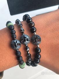 Bellissimi bracciali uomo realizzati con perle di pietra naturale, e ciondolo albero della vita in ematite. Originali, unico di grande effetto!