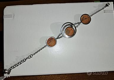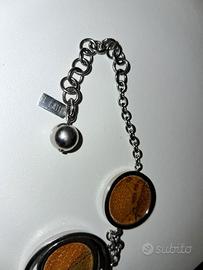 Vendo bracciale donna marca Alviero Martini, acciaio e brillantini, come visibile in foto. Disponibile alla spedizione ed anche al ritiro a mano in zona Roma Tiburtina, vicino stazione