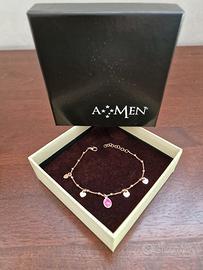 Amen Bracciale in argento 925 rodio color oro rosa con medaglia Madonna Miracolosa in smalto rosae n.4 pendenti a forma di cuore.
