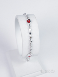 Bracciale ancora smaltata blu e rossa, in oro bianco 750 18kt. Chiusura a moschettone. Grandezza piastra 8.36mm Misura 20 1/2 G. 5.43 Gioiello ricondizionato