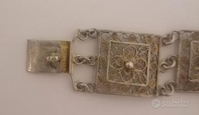 Bracciale dei primi del '900 in filigrana. Lunghezza 20 cm. Altezza 1,8 cm Peso 17 grammi.