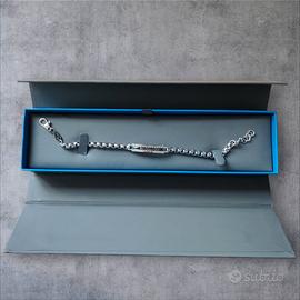 Il bracciale è in ottime condizioni e viene venduto con la sua confezione originale (box rigido blu e grigio), ideale anche come idea regalo di classe. Dispone di una pratica chiusura a moschettone e di una catenella finale per regolarne la vestibilità.