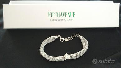 Il Bracciale Fifth Avenue Lurex e Argento 925 è realizzato in prezioso Lurex, un intreccio di diverse fibre sintetiche più uno strato di alluminio vaporizzato, e Argento 92. Completamente anallergico e incredibilmente morbido, il lurex originale è il segno distintivo di Fifth Avenue Mesh Luxury Jewels. Metallo: argento 925/00 e tessuto realizzato con filo originale di lurex color argento, con 1 stella centrale, chiusura a moschettone. Mai usato, mai indossato. Vendo con la custodia originale. Lunghezza:17 cm #idearegalo #braccialeargento #braccialedonna #braccialemetallo #braccialeacciaiodonna #braccialeconcharms