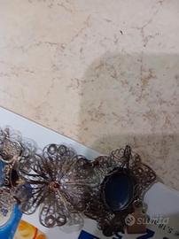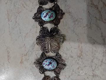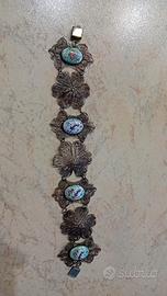 bracciale in filigrana d argento,intervallato da cabochon base rame dipinto a mano pezzo unico antico,