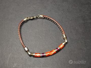 Elegante Bracciale unisex in cuoio e argento con decorazioni smaltate ottime condizioni come da foto.