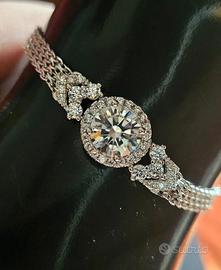 come nuovo. in argento con pietra da due carati. Eleganza e luminosità garantite. certificato GRA presente cm 18