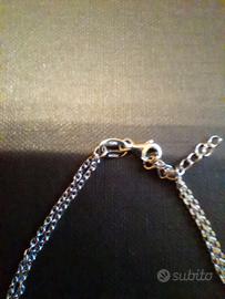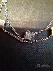 bracciale catena incrociata, argento punzonato 925, con centrale con zirconi