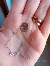 Bracciale in argento 925 con gufo portafortuna impreziosito da zirconi.