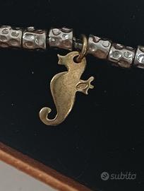 Bracciale con pepite in argento simil Dodo, con ciondoli a tema marina placcati in oro giallo. Ottimissime condizioni, dispone di due tipi di chiusura, regolabile in base al polso. Praticamente uguale al originale della famosa marca, per quanto riguarda il materiale e la manifattura. Non perditempo, non vendita fuori dalla piattaforma.