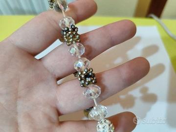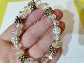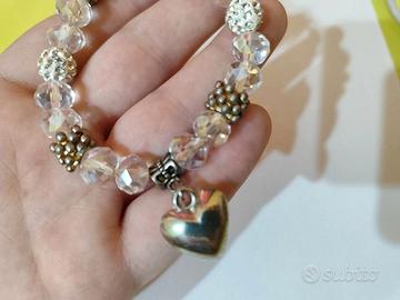 Bracciale di bigiotteria colori bianco e argento con ciondolo a cuore. La base del bracciale è elastica.