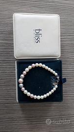 Splendido ed elegante braccialetto firmato Bliss, caratterizzato da un raffinato mix di perle naturali in tre delicate tonalità: rosa pastello, lilla e bianco candido.