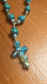 Bracciale fatto a mano con perline colorate e una croce. - Perline blu e verdi. - Ciondolo a forma di croce. - Fatto a mano.