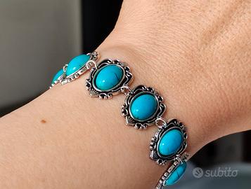 Due chiusure per regolato anche sui polsi più piccoli. Inox e pietre finte turchesi. Nessun difetto poiché indossato solo per fare le foto.