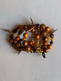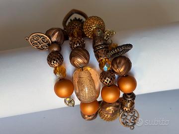 Bracciale donna a spirale, con pietre e charmes di vario genere, color oro e bronzo