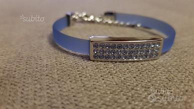Bracciale con chiusura regolabile azzurro con placca argentata arricchita da brillantini