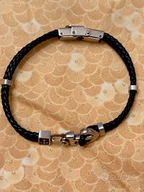Bracciale in acciaio e similpelle. Mai indossato. Confezione mancante.