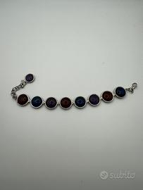 Bracciale Brosway originale in acciaio, dal design elegante e moderno, composto da una sequenza di pietre tonde multicolor incastonate lungo tutta la lunghezza. •Marca: Brosway (incisione visibile sulla piastrina) •Materiale: acciaio inox •Pietre: cabochon multicolor (toni blu, viola e marrone), presenti su entrambi i lati del bracciale •Montatura: castone tondo in acciaio lucido •Chiusura: moschettone con catenella di regolazione •Stile: raffinato, luminoso, perfetto sia per il quotidiano che per occasioni speciali •Condizioni: ottime, normali segni di utilizzo compatibili con l’età ✨ La lavorazione fronte/retro delle pietre è un dettaglio di qualità che rende il bracciale particolarmente curato e versatile. Disponibili anche collana, orecchini e anello coordinati. 👉 Acquisto in set a prezzo vantaggioso: contattami in privato per creare il bundle con sconto dedicato.