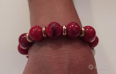 Bracciale in calcedonio rosso lavorato a mano Sfere diametro 14 mm Peso 62 grammi