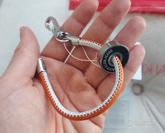 Vendo bracciale uomo marchio Calvin Klein colore arancione con ciondolo nero marchiato, misura polso piccolo, confezione originale.