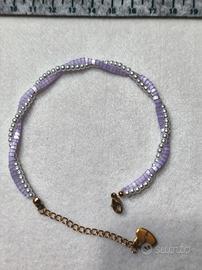 Vendo bracciale fatto a mano, realizzato con perline bianche tipo perla e perline quadrate color lilla. Il design è semplice ed elegante, perfetto per aggiungere un tocco delicato a qualsiasi outfit.