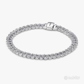 Bracciale maglia cubana in argento sterling 925. Il lato superiore sfoggia brillanti zirconia cubica, mentre il lato inferiore è lucido e dona luminosità e comfort. Il bracciale ha una chiusura piatta quadrata.